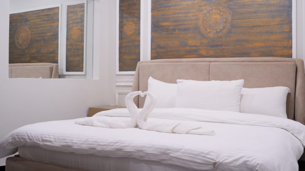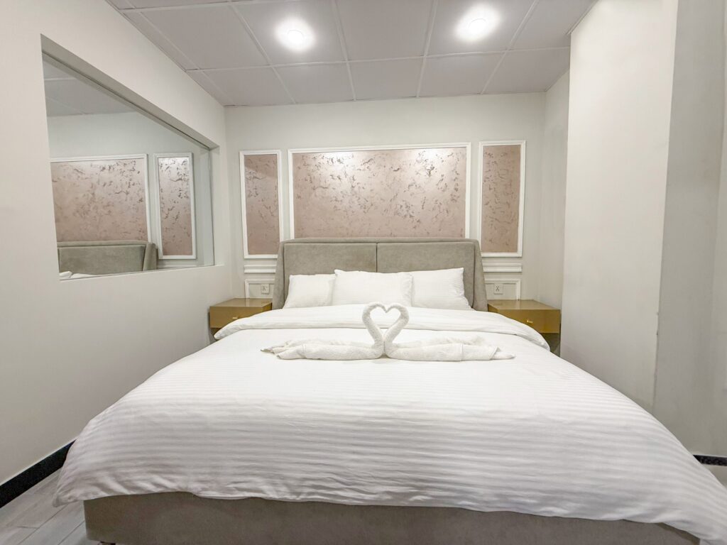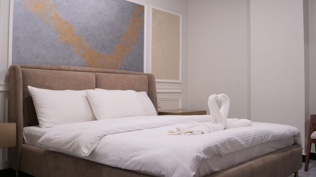 Deluxe hotel room in Islamabad with soft bedding and modern interior